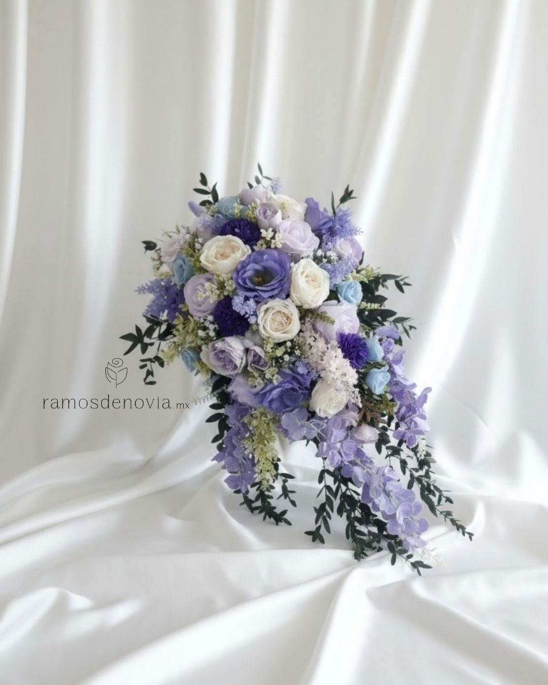Cascada suave en lila y blanco con textura floral.