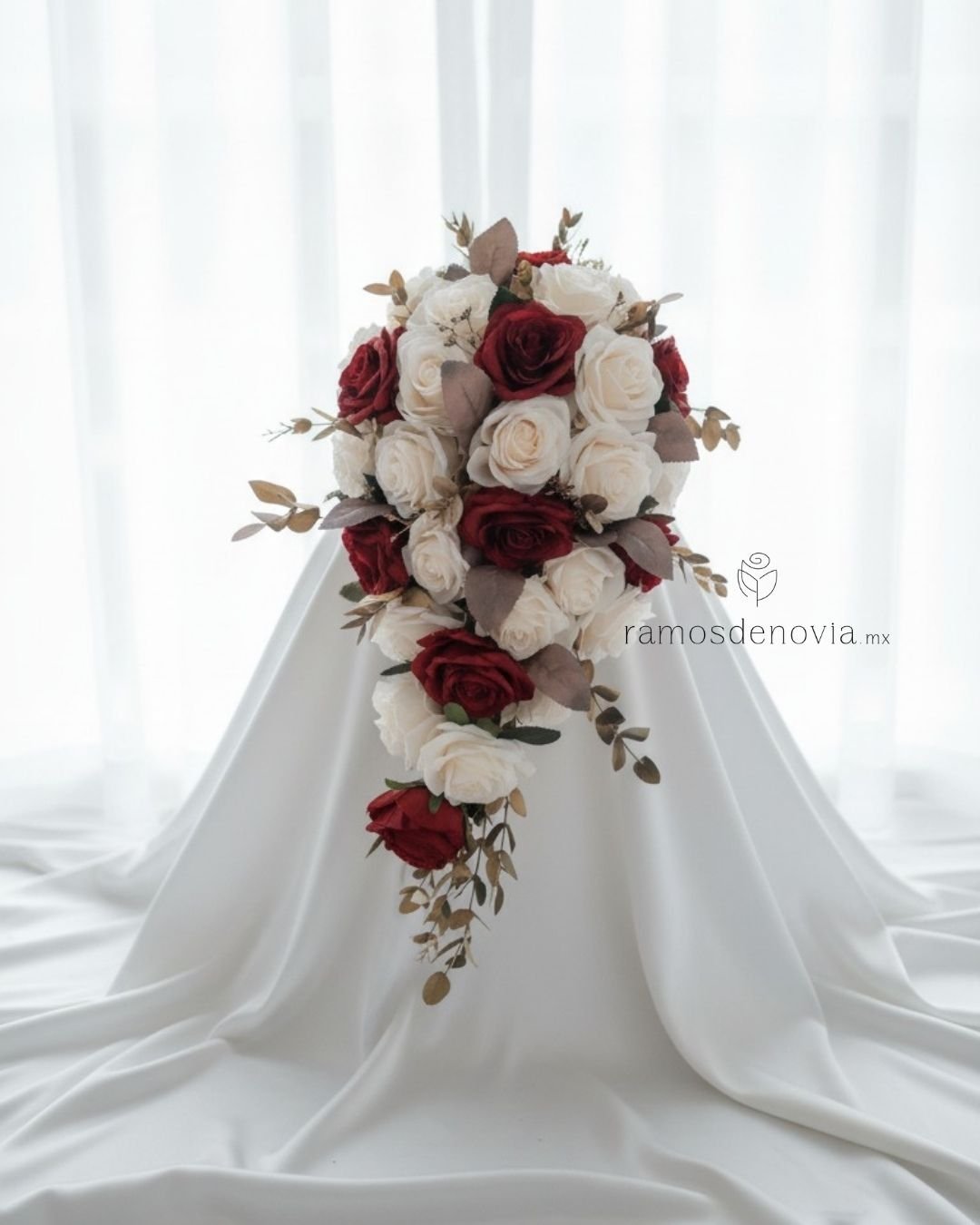 Cascada clásica en rojo y blanco, intensa y romántica.